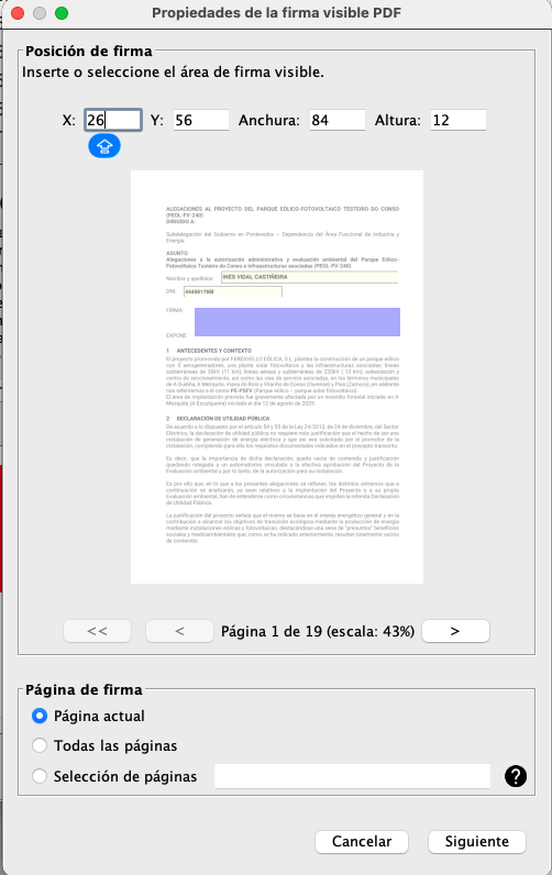 Selecciona onde queres que apareza a firma (debaixo do nome e o dni)