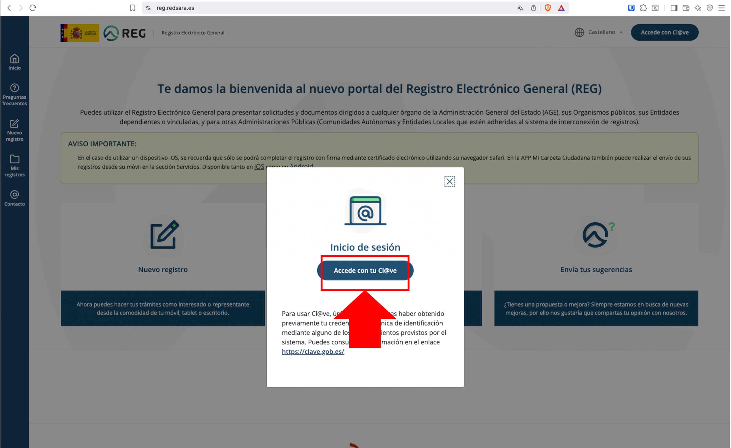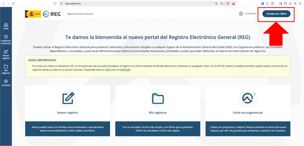 - ir a: https://rec.redsara.es/registro/action/are/acceso.do