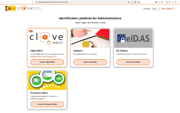 - seleccionar o tipo de identificación do que se dispoña: cl@ve o e-identifier (certificado)