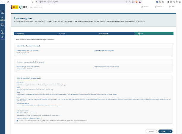 - Comprobar que toda la información está correcta y enviar la alegación.